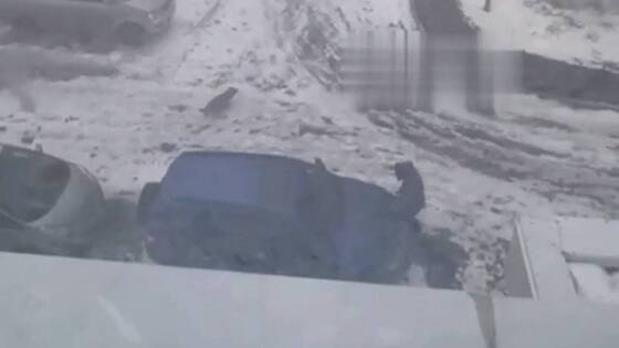 На записи, сделанной очевидцем произошедшего, можно увидеть, как россиянин, держась за машину, выгуливает собаку возле дома в сильную непогоду. В один момент порывом ветра мужчину сносит на несколько метров вперед, после чего он поскальзывается, падает и проезжает несколько метров по льду, не выпустив при этом поводок из рук. Собака в этот момент бежит за ним.