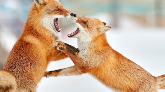 Две лисы подрались из-за сосиски на острове Русский