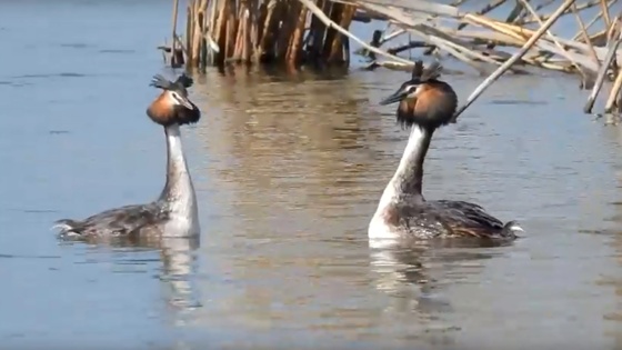 В Курской области орнитолог-любитель Павел Кудрин запечатлел брачные танцы чомг. Птицы вернулись во второй половине марта и сейчас отдыхают и отъедаются после прилета. — Но две или три пары явно собираются здесь же и поселиться. Вот они-то ведут себя иначе. Хрипло и гортанно трубят, устраивают стычки и догонялки на воде. И конечно, время от времени сходятся в танцах… Гривы чёрно-огненным веером, ушки-рожки торчком, шеи гнутся и клювы кивают… – рассказал автор видео Павел Кудрин. Чомг также нередко называют большими поганками. Такое название птицы получили из-за невкусного мяса, издающего неприятный запах. Это служит для них механизмом защиты от охотников. Больше новостей в нашем Telegram-канале PROKursk и соцсетях «ВКонтакте» и «Одноклассники»