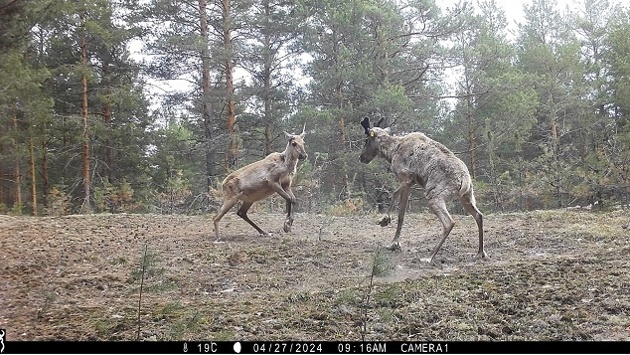 Драка северных оленей попала в фотоловушку в Керженском заповеднике