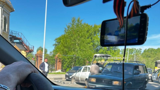 Утром в субботу, 18 мая, в Новокузнецке на объездной дороге возле Крепости столкнулись лоб в лоб две легковушки.