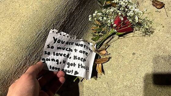 «Ты заслуживаешь многого. Тебя очень любят. Продолжай в том же духе, у тебя все получится! Я люблю тебя!» — говорится в записке. Мужчина уточнил, что заметил послание на парковке рядом с больницей, куда он приехал, чтобы навестить недавно родившую жену. По его словам, вместе с запиской на земле лежала роза.