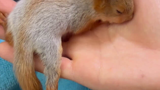В парке «Лога» в Ростовской области ветеринары спасли бельчонка, который выпал из дупла