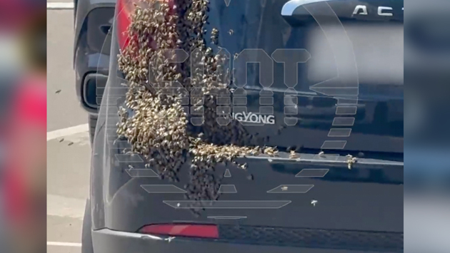 На записи видно, как сотни жужжащих насекомых сели на фонарь заднего хода черного SsangYong Actyon, пока хозяева ходили по магазинам.