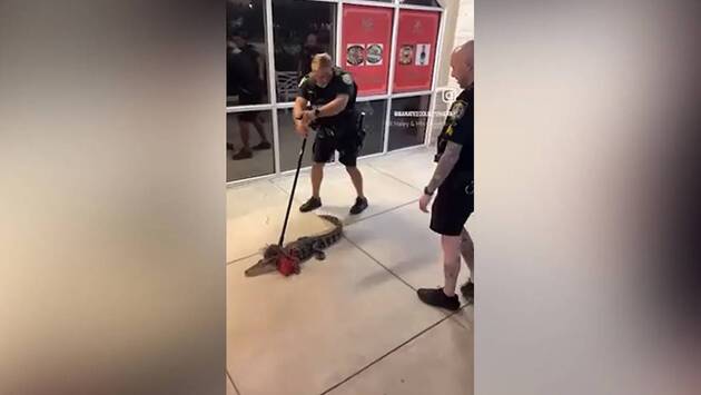 Инцидент, произошедший в городе Брейдентон, попал на видео, снятое самими правоохранителями. На кадрах видно, как полицейский прижал полутораметровую рептилию к тротуару шваброй и проводил ее до зарослей вдали от входа в заведение. Позже аллигатор попытался вернуться, но бдительные стражи порядка снова его прогнали.