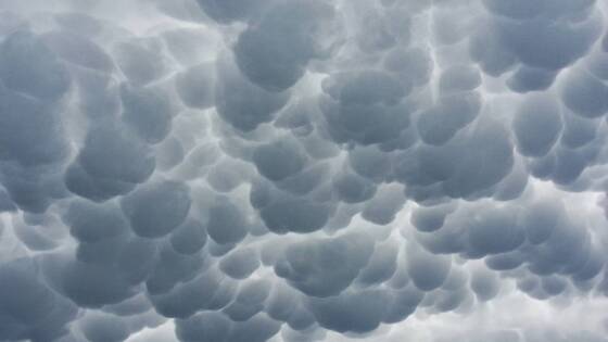 Мамматусы, или вымеобразные облака, имеют специфическую ячеистую или сумчатую форму в основании. Образуются, как правило, после грозы.