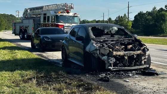 Toyota GR Corolla начинает дымить и сгорает к чертям – видео с регистратора