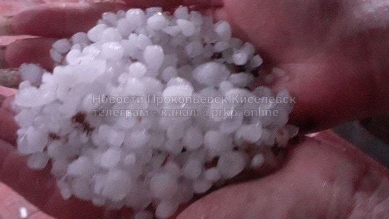 В Киселевске бушуют гроза и град. Размер осадков достигает примерно сантиметра – их сфотографировали местные жители.