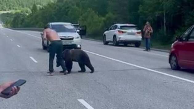 Хищник вышел из леса на дорогу и вынудил несколько автомобилей остановиться. Он спокойно брал еду из рук проезжающих и позировал на камеру. Люди оценили дружелюбие медведя и стали подходить ближе. Так рядом и оказался мужчина в тапочках, которые привлекли внимание зверя. Медведь едва не забрал обувь россиянина, но тот сумел отбиться. Никто не пострадал.