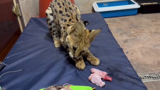 Сервала, которого обнаружили в лесу Борского района, оставила себе семья, имеющая опыт в работе с хищными кошками. Об этом рассказала зооволонтер Лара Саплина. Зоозащитница опубликовала видео из дома, где сейчас живет сервал. На кадрах он кушает приготовленную ему курицу. Напомним, хищную кошку обнаружили во время прогулки по лесу местные жители в субботу, 22 июня. Сервал проявлял агрессию, кидался на людей, не подпуская никого к себе. Тем не менее, кошку поймали и посадили в клетку. Пока искали хозяев, волонтеры забрали к себе на временную передержку. Ранее на сайте pravda-nn.ru сообщалось, что волонтеры спасают кота с травмированными лапами в Нижнем Новгороде.