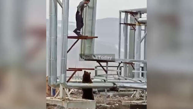 В Норильсе вахтовики забрались на трубы от вышедшего к ним медведя