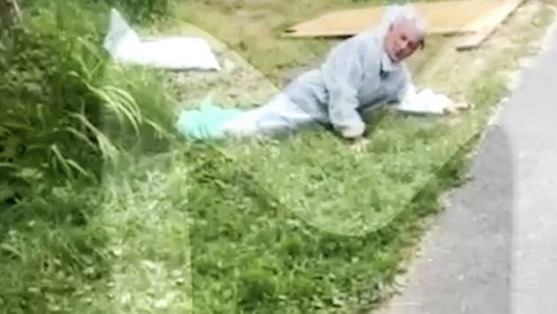 На кадрах виден лежащий в траве ветеринар, который просит очевидцев оставить его, а затем желает стоящим рядом женщинам получить травму во время работы с циркулярной пилой. «Чтоб вам циркуляркой *********** [отрубило] три пальца и четвертый язык», — говорит он.