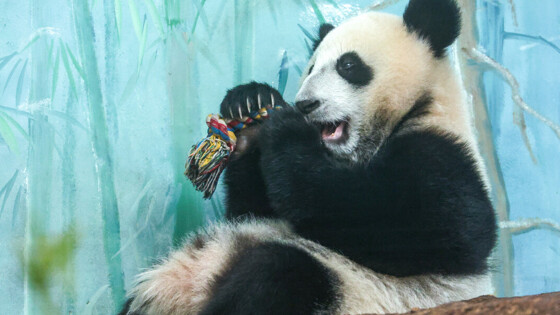 Сначала мама-панда игнорировала буйное поведение детеныша, но потом все-таки проявила характер и обуздала разыгравшегося ребенка. Правда, Катюша к этому моменту успела полазать по столбам, искупаться в бассейне и побегать по вольеру. В какой-то момент Диндин схватила медвежонка и попыталась удержать силой. Понемногу Катюша утихомирилась и перешла к развивающим играм на своем любимом месте.