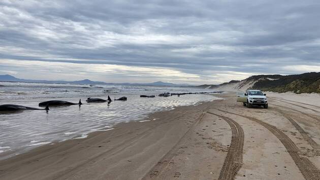 BDMLR получила сообщение о массовом выбросе гринд, которых также называют черными дельфинами, утром 11 июля. К тому времени, когда спасатели прибыли на место происшествия, животные находились на берегу несколько часов. В стае были взрослые самцы и самки, а также детеныши. Из 77 особей были живы только 12.