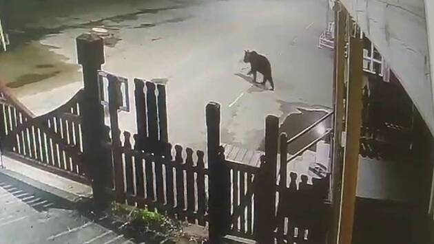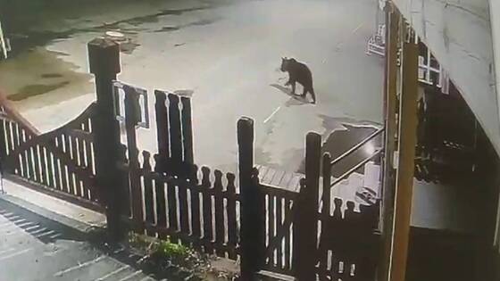 Медведь вынес мусорный бак из гостиницы и украл дыню