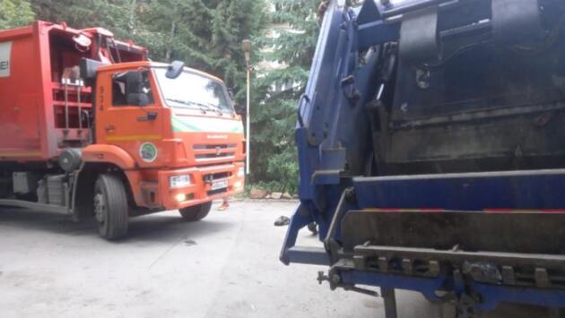 Мусоровоз провалился под асфальт на улице Советской в Новосибирске