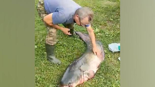 Указано, что сом весил 32 килограмма, а его длина составила около 170 сантиметров. Также отмечается, что местному рыбаку пришлось постараться, чтобы вытащить сома из воды. «Он меня таскал», — рассказал рыбак на публикуемом в сети видео.