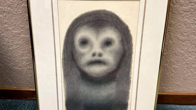Парень показал, что в сейфе лежала картина, нарисованная простым карандашом. На ней изображено человекоподобное существо. По словам рассказчика, рисунок датирован 1985 годом.