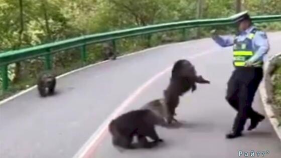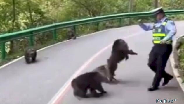 Обезьяны напали на полицейского и устроили пробку на дороге