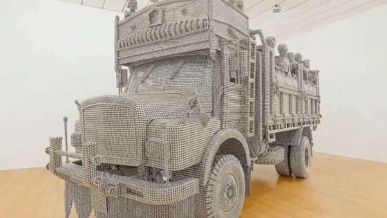 В Сети вспомнили эпичную скульптуру «Транзит», посвященную фермерам ИндииВодители грузовиков часто попадают в истории, забавные и опасные и удивительные, а некоторые из них запоминаются особенно надолго. В очередной видеоподборке – яркие эпизоды последних нескольких лет, попавшие на камеру. Но один даже среди них стоит особняком. Несколько десятков тысяч маленьких стальных дисков (в некоторых источниках – шариков) скрупулезно собрал в единую скульптуру художник и скульптор из Индии Валай Шенде (Valay Shende). Он закончил эту скульптуру в 2010 году, пользуясь точечной сваркой и затратив на все работы 18 месяцев. Работа под названием «Транзит» изображает грузовик в натуральную величину, перевозящий в кузове группу из двадцати двух человек. Это своего рода высказывание по драматической ситуации в сельском хозяйстве Индии, где нередки случаи самоубийства среди фермеров, не имеющих возможности прокормить семью. В зеркала заднего вида грузовика встроены дисплеи, на которых можно видеть улицы Лондона, Мумбаи и Дубая. Посетитель выставки может представить, как грузовик перемещается с точки зрения водителя. В 2015 году «Транзит» экспонировался в Городском музее Мумбаи. Источник: ПРО Технику