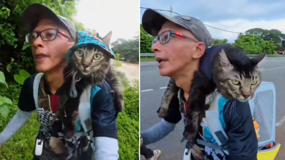 42-летний малайзиец по имени Апак удивил людей, когда принял участие в гонке, пробежав 10 км с котом по кличке Джибек на плечах. Мужчина рассказал, что во время забега заботился о питомце, обеспечивая его едой и защищая от солнца панамой.
