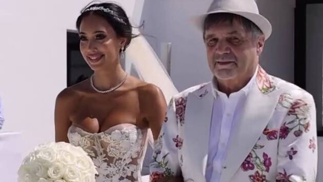 Инфлюэнсерша поделилась видео с церемонии, в котором запечатлена вместе с отцом, ведущим ее к алтарю. На размещенных кадрах видно, что для праздничного мероприятия женщина выбрала прозрачное платье, оформленное кружевами.