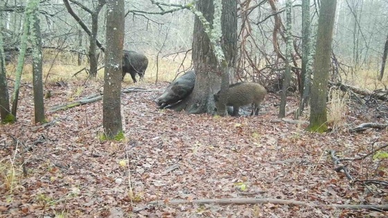 Такие деревья нужны кабанам по двум причинам. Первая - удовольствие. О стволы животные чешут бока. Судя по виду кабанов, попавших в эти моменты в кадр фотоловушки, радость они испытывают неподдельную.