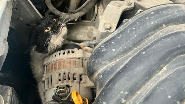 Кота, которого намотало на ремень двигателя, спасли в Уфе
