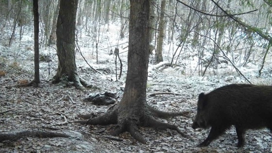 "Если с членами своего стада кабан может пообщаться напрямую, то с другими особями приходится "переписываться" при помощи запаховых меток, оставляемых на стволах деревьев. Кабан на фото идёт "читать" сообщение на стволе чесального дерева и "писать" ответ", - прокомментировали сделанный в рязанском лесу снимок сотрудники заповедника.