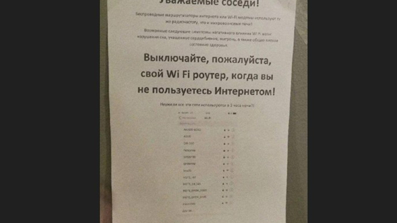 В одним из московских ЖК жильцы заметили объявление, призывающее выключать Wi-Fi, потому что он якобы вреден.