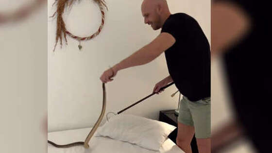 Житель Южной Африки нашел капскую кобру под подушкой в своей кровати, пишет UPI. Эта змея считается одной из самых ядовитых в мире. Профессиональный специалист по борьбе с рептилиями Эмиль Россоу был вызван для извлечения крайне ядовитой капской кобры, найденной местным жителем под подушкой его кровати. Компания Stellenbosch Snake Removals опубликовала в социальных сетях кадры, запечатлевшее работу змеелова. "Не то, что хотелось бы видеть в своей постели", - пошутил мужчина на камеру. По данным Африканского института по изучению укусов змей, капская кобра считается "несомненно самой опасной из кобр". Эксперты предупреждают местных жителей быть осторожными, особенно вблизи своих домов, и при обнаружении змей незамедлительно вызывать профессионалов.