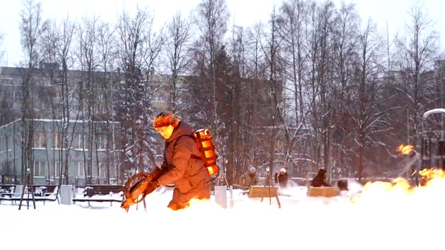 Петербургский чиновник с огнеметом вышел на уборку снега