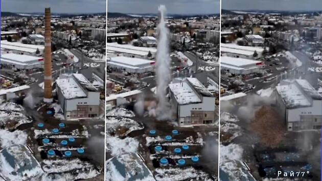 Зрелишный снос сооружения был запечатлён очевидцами подрывных работ, которые поделились с Рай77° занимательным сюжетом. »»ВИДЕО««