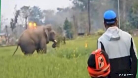 Несколько дней назад в национальном парке Бардия (Непал) произошло неравное противостояние людей и дикого слона.