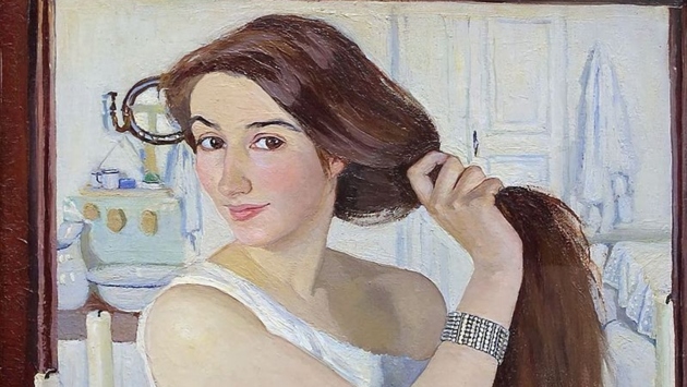 В конце концов Ландер посмотрела в сети репродукцию картины Серебряковой «За туалетом. Автопортрет» 1909 года, которая находится в коллекции Третьяковской галереи в Москве.