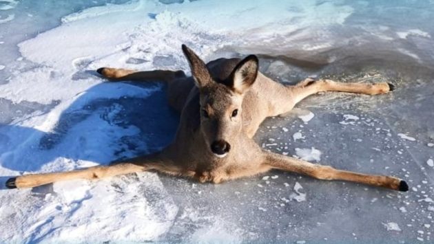 Королева растяжки. Распластавшуюся на льду Байкала косулю сделали мемом