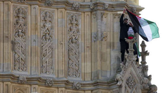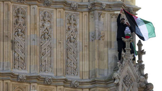 Пропалестинского активиста, который забрался на башню Елизаветы Вестминстерского дворца в Лондоне, более известную под названием размещенных на ней часов Биг-Бен, сняли со здания спустя 16 часов. Об этом пишет британская газета Independent. По данным газеты, мужчину сняли около полуночи по местному времени (около 3:00 по московскому), после того как спасатели и переговорщики в третий раз попытались уговорить его спуститься. До этого телеканал Sky News сообщал, что сотрудники экстренных служб проводили с активистом переговоры с пожарного подъемника. Однако мужчина заявил, что спустится только "на своих условиях". Более того, пропалестинский активист пригрозил, что в случае, если спасатели к нему приблизятся, ему придется подвергнуть себя опасности и забраться еще выше. Активист публиковал видеоролики с Биг-Бена в Instagram (владелец компания Meta признана в России экстремистской и запрещена), на одном из них он заявлял, что планирует остаться на башне 3,5 дня. Из-за происходящего весь Виндзорский мост в центре британской столицы оказался перекрыт для пешеходов и транспорта. В свою очередь газета The Daily Mail писала, что активист забрался на башню королевы Елизаветы II около 7:24 (10:24 мск) и вел прямую трансляцию в социальной сети. Мужчина также выкрикивал слова "свободу Палестине".
