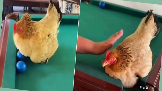 Судя по комментарию автора видео, полученного Рай77°, курица, увидев, что её подруга скоро станет матерью, забралась на стол для бильярда и, испытывая материнский инстинкт, пригрела несколько бильярдных шаров, приняв их за яйца, чем не мало удивила владельца курятника, запечатлевшего необычное поведение несушки.