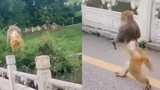 Обезьяны часто становятся популярными в социальных сетях, когда совершают аморальные поступки. Но на видео, опубликованном на днях в сети, примат передвигался на двух ногах, как человек, а затем бежал, отталкиваясь от столбов моста.