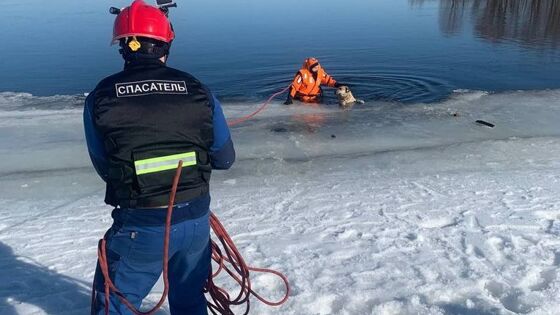 Сарапул. Удмуртия. В Сарапуле 24 марта спасатели вытащили провалившегося в воду пса по кличке Шарик. Об этом в своём ТГ-канале сообщил председатель Госкомитета Удмуртии по делам ГО и ЧС Андрей Шуткин.