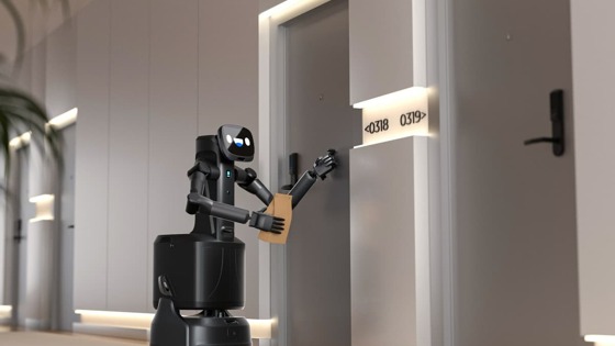 Система VSLAM с камерами RGB, панорамными камерами и LiDAR создает 3D-карту окружения, помогая избегать препятствий — например, гостей отеля. Весит робот всего 15 кг, а батарея после 4 часов зарядки работает 8 часов (без тяжелых грузов).