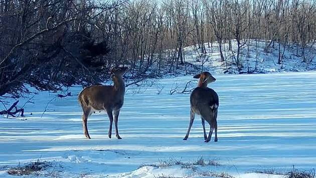 На видео запечатлели стадо оленей, которое вышло на обледеневший водоем посреди дня. В какой-то момент две самки удачно встали около камеры и начали поджимать уши, приподнимать головы и соревноваться взглядами. «Подняв свои мохнатые мордочки, ни одна из самок пятнистого оленя не желает уступать сопернице, наверное, гордость не позволяет», — сказано в сообщении.