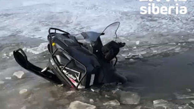 В Новосибирской области на видео попал вмерзший во льды снегоход