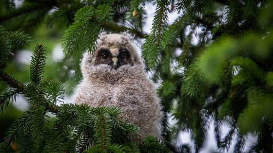 На одном из размещенных кадров были запечатлены специалисты, которые сняли с большого хвойного дерева птенца. На другом снимке эксперты сняли детеныша совы крупным планом, демонстрируя его оперение и величину.