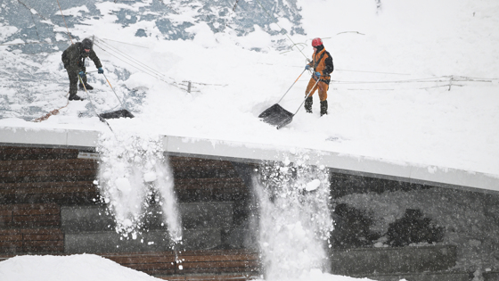 Рабочий, сбрасывавший апрельский снег с крыши жилого дома в столичном районе Выхино-Жулебино, привлек внимание местных жителей. Теперь они спросят, кого привлечь к ответственности за такие коммунальные услуги.