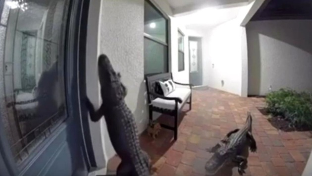 На видео, распространенном в социальных сетях, полученном Рай77°, камера видеонаблюдения запечатлела появление двух аллигаторов возле частного жилища. На кадрах видно, как рептилии пытаются проникнуть на территорию и даже залезть на дверь.