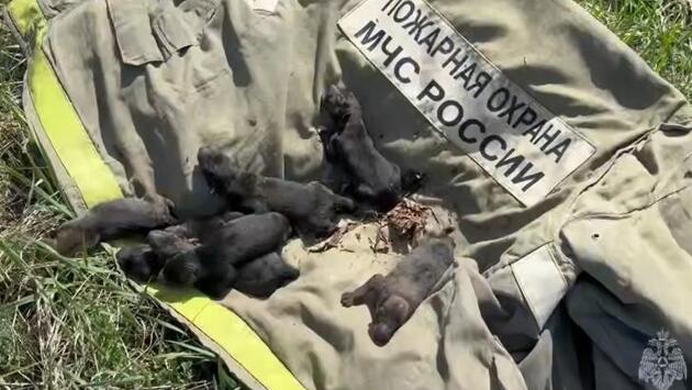 Возле Курского моря в деревне Щетинка горел сухой камыш. Пожар распространился на площади 1,5 тыс. квадратных метров. Внезапно спасатели услышали жалобный писк и увидели на траве семерых новорожденных щенков, к которым уже подбирался огонь. Пожарные уложили малышей на куртку и аккуратно вынесли в безопасную зону. К ним прибежала мать, которая все это время металась возле пожара, не зная, как помочь щенкам.
