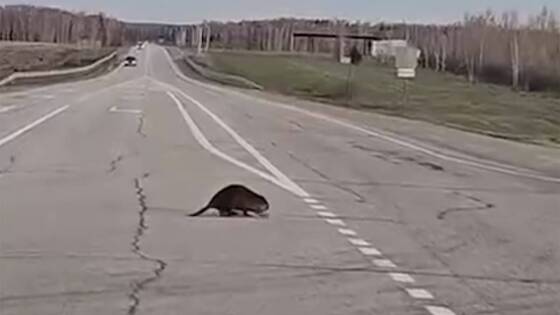 Бобер-инспектор вышел на российскую трассу и попал на видео