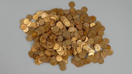 Сначала туристы нашли алюминиевый контейнер, в котором лежали одиннадцать стопок золотых монет, завернутых в черную ткань. Всего их оказалось 598 штук, их вес составил 3,7 килограмма. Недалеко от монет была закопана железная шкатулка. Внутри лежали 10 золотых браслетов, расческа, цепочка, кошелек и пудреница.