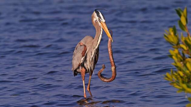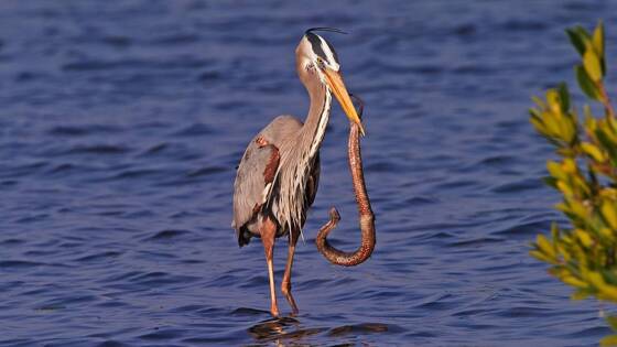 Житель штата Флорида Маркос Родригес работает инженером, но увлекается съемками дикой природы. В конце февраля он прогуливался с фотоаппаратом по Национальному парку Эверглейдс в штате Флорида. Неожиданно для себя он стал свидетелем схватки между цаплей и змеей. Большая синяя цапля поймала флоридскую полосатую неродию — неядовитую змею из семейства ужеобразных. Птица уже собиралась пообедать, когда змея внезапно дала ей отпор и обвилась вокруг ее шеи и клюва.